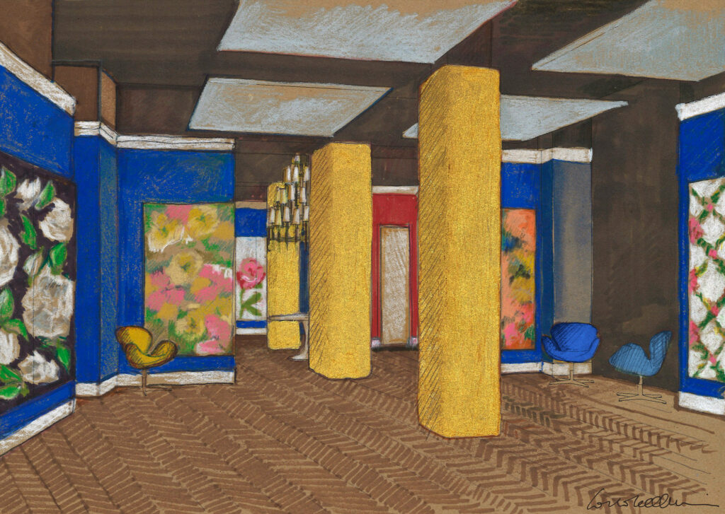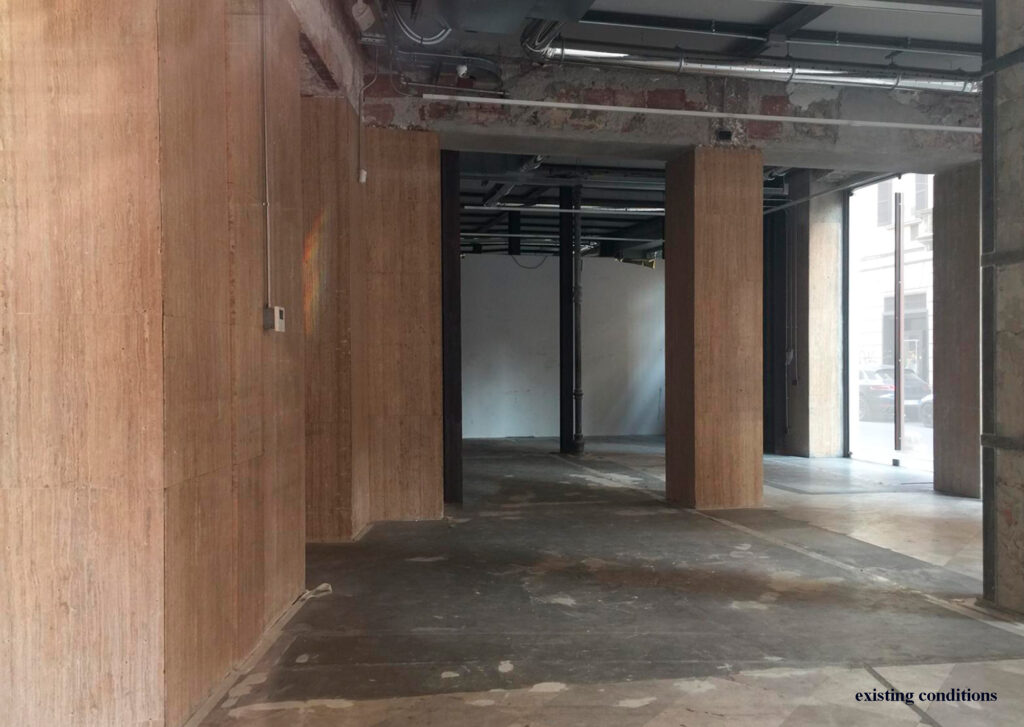 Il progetto rende omaggio a questa figura carismatica e al dipinto “Rissa in Galleria”, conservato nella vicina Pinacoteca di Brera. All’interno del nuovo spazio monomarca i colori giocano un ruolo fondamentale: il blu cobalto che si mescola al rosso magenta e al verde smeraldo, tutto irradiato dal giallo dorato.La scelta dei colori e la presenza dei tre pilastri d’oro traggono ispirazione direttamente dal dipinto e trasmettono tutto il fermento e l’energia della scena ambientata in Galleria Vittorio Emanuele.