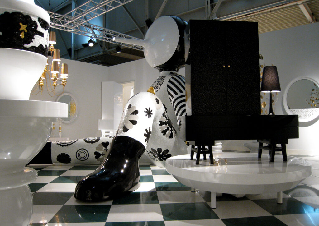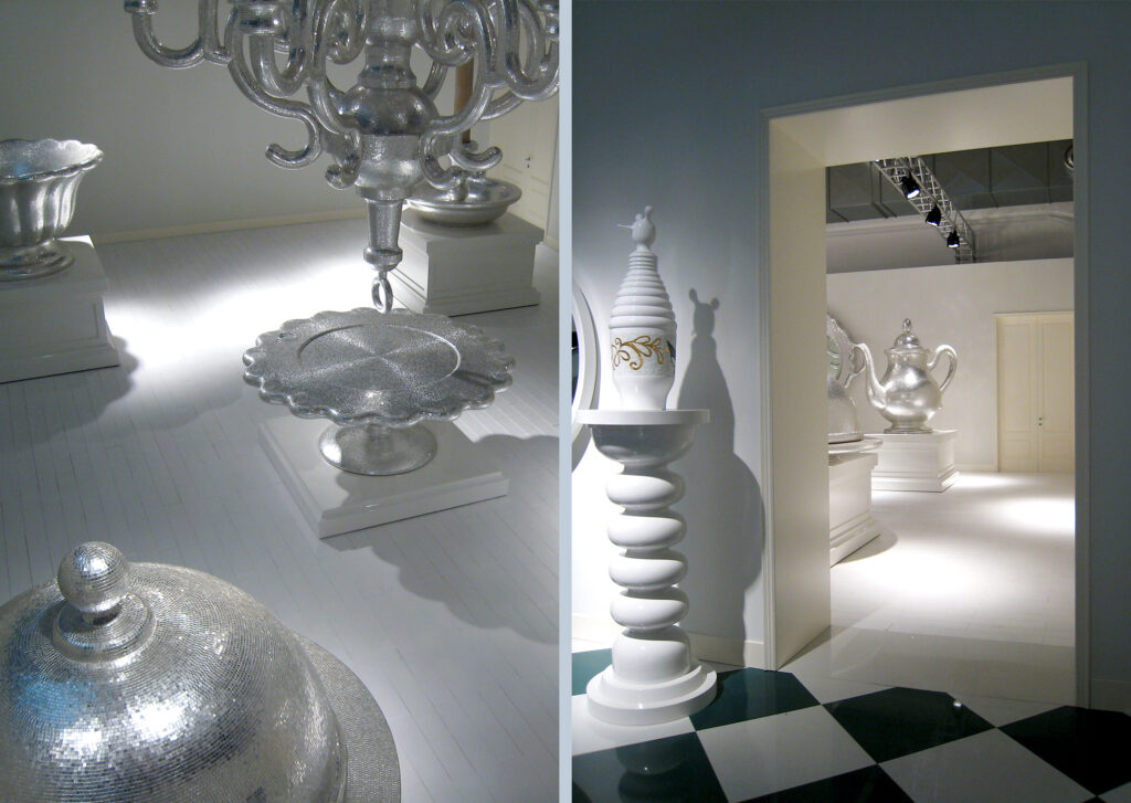 Progetto del padiglione espositivo presso Superstudio, in via Tortona a Milano, in occasione del Salone del Mobile 2007, per accogliere gli allestimenti di Jaime Hayon e di Studio Job.