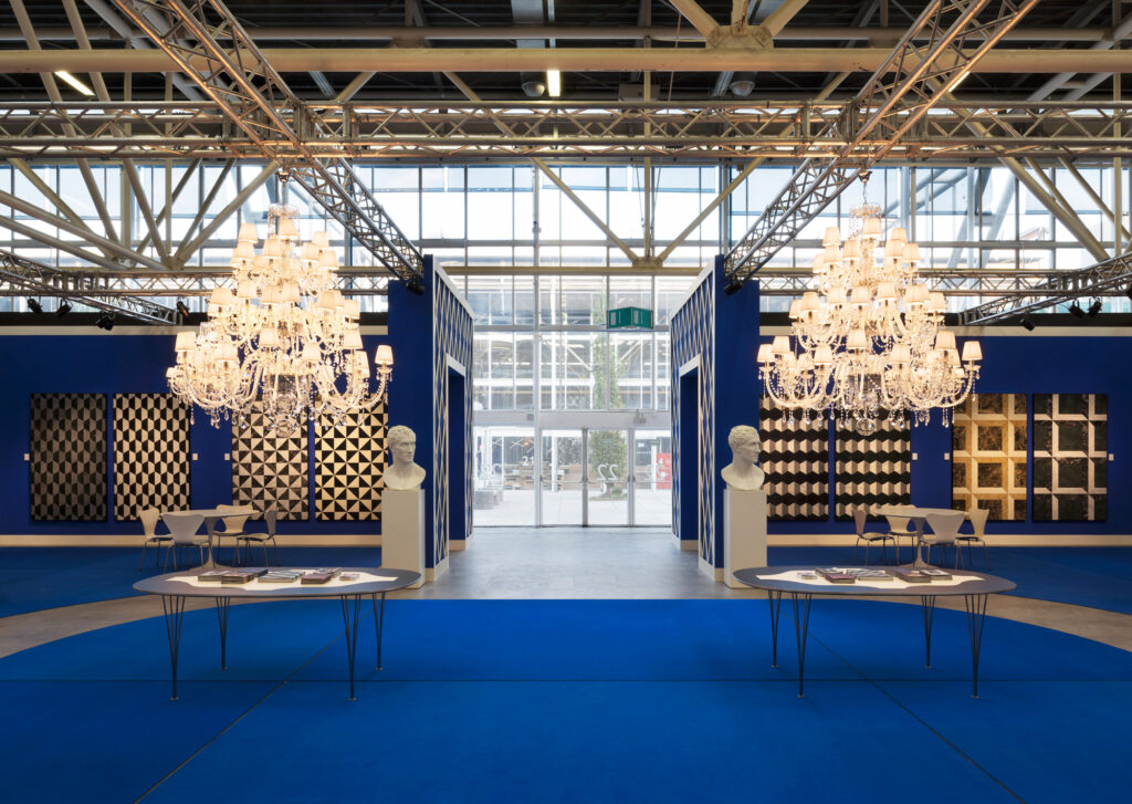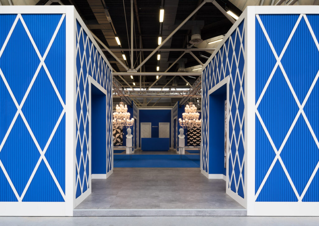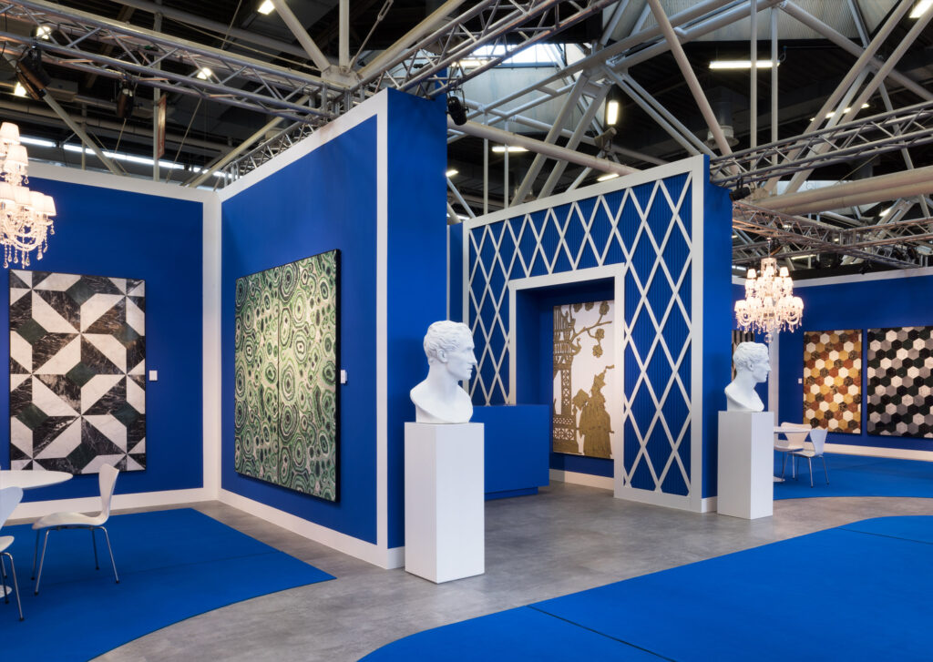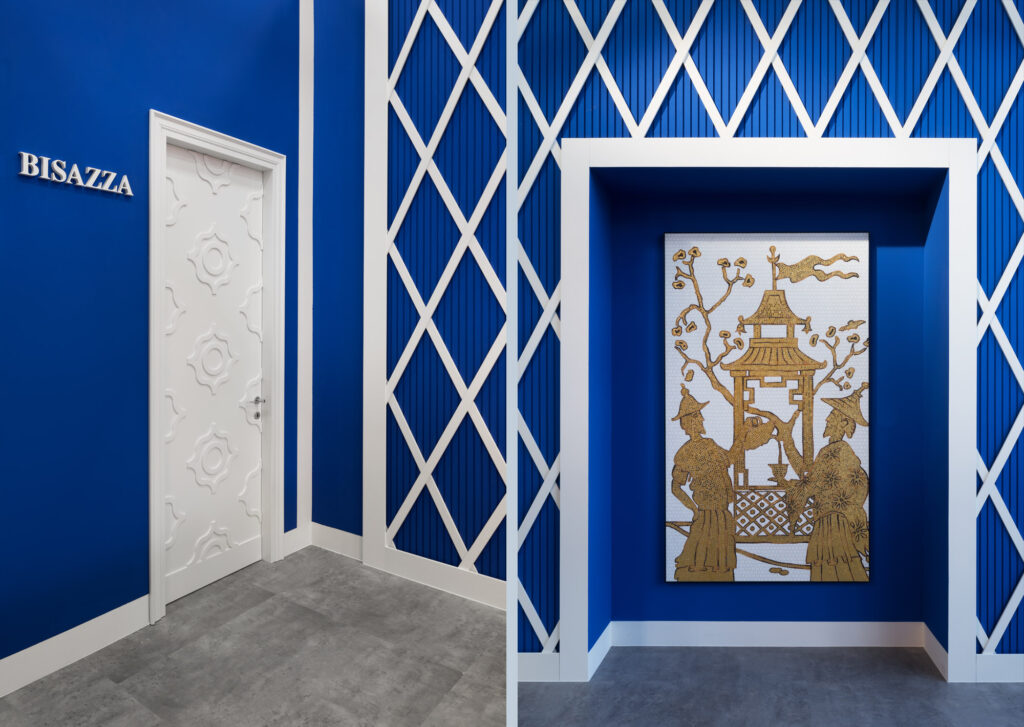 Progetto per lo stand di Bisazza presso la fiera Cersaie di Bologna, salone internazionale dedicato al rivestimento ceramico e all’arredo bagno. L’inteso color blu domina tutti gli interni dello spazio, pensati per ospitare la nuova collezione Marmo del brand.