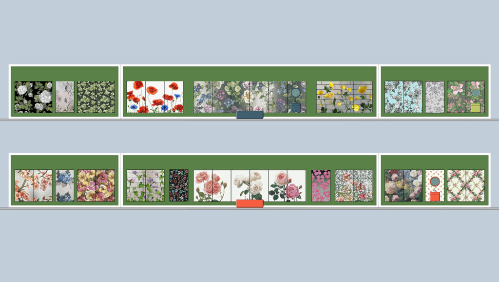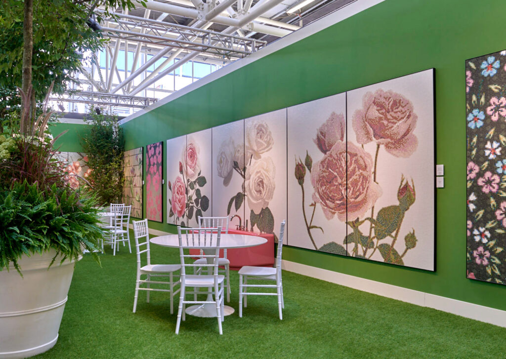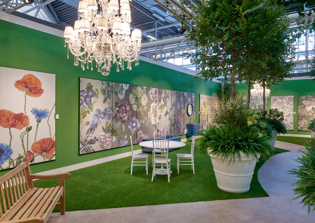 Un inaspettato giardino dove i fiori sono reinterpretati in mosaico: nuovi decori disegnati da Carlo Dal Bianco che parlano di colore, di bellezza, di primavera e che riconducono all’allure dei giardini neoclassici francesi, rievocando l’atmosfera di primo Ottocento.