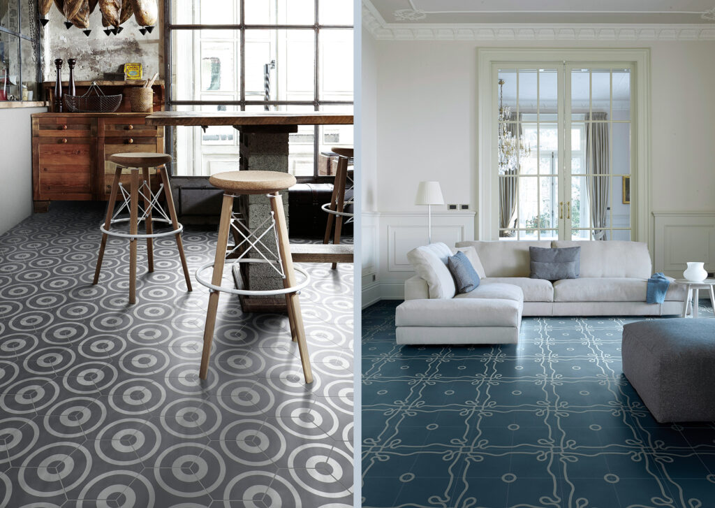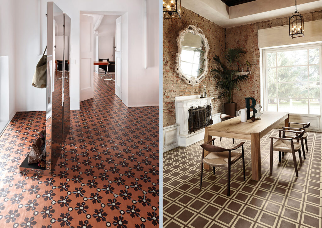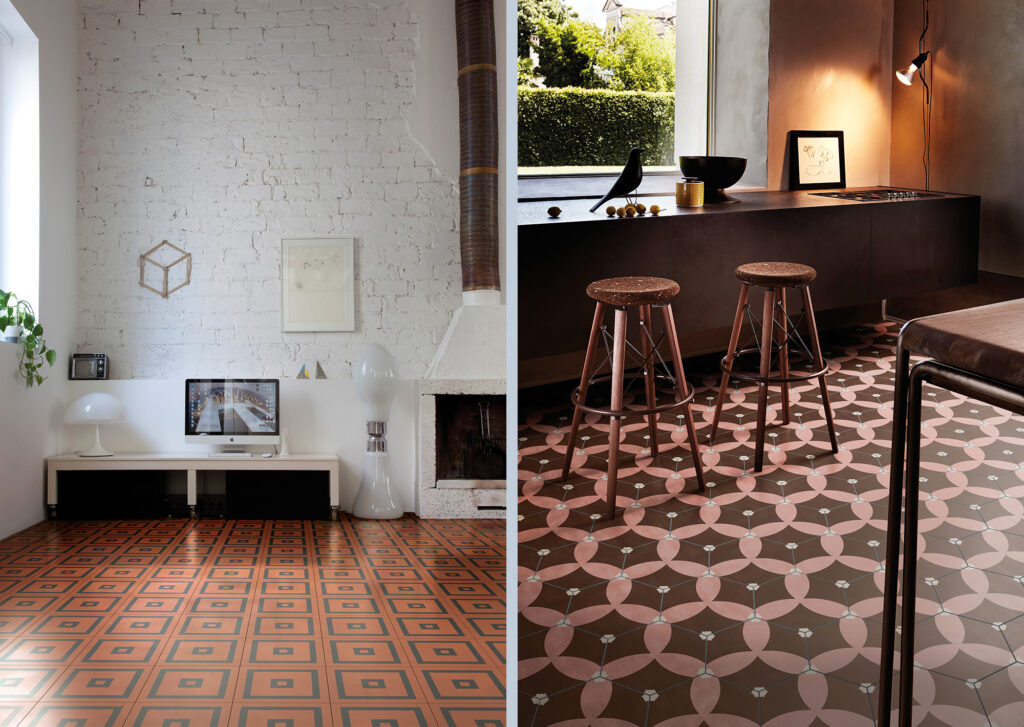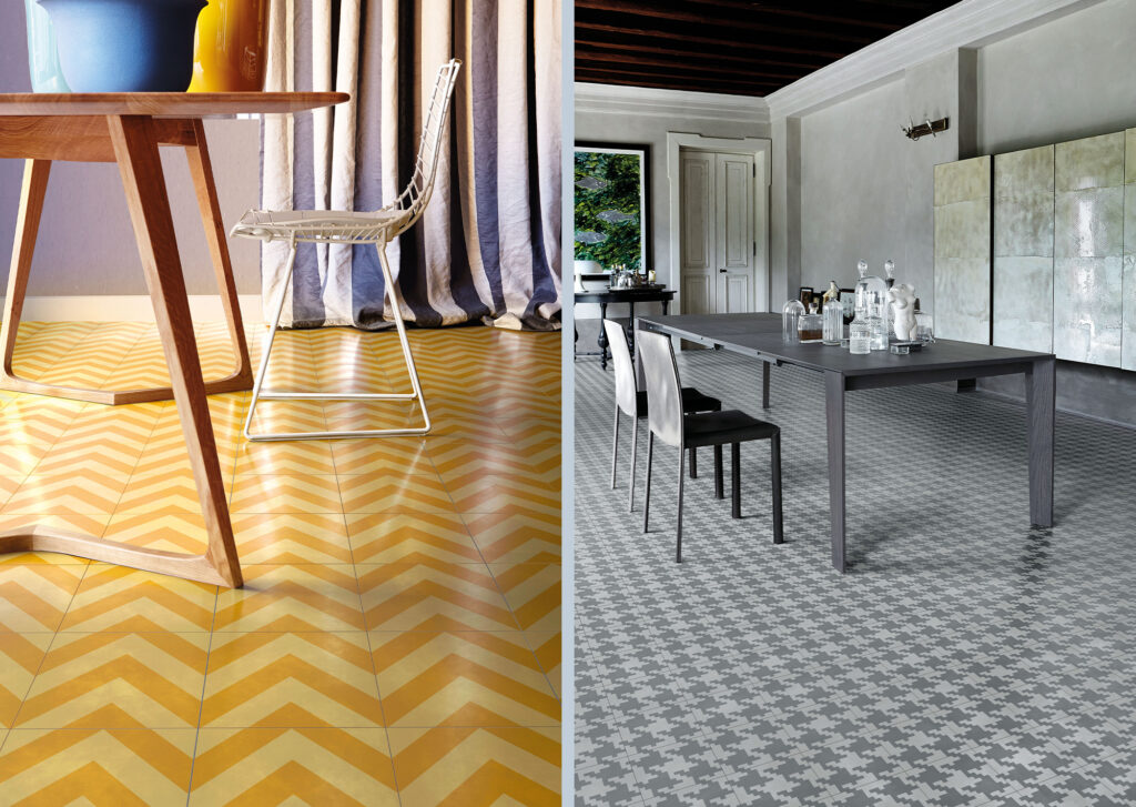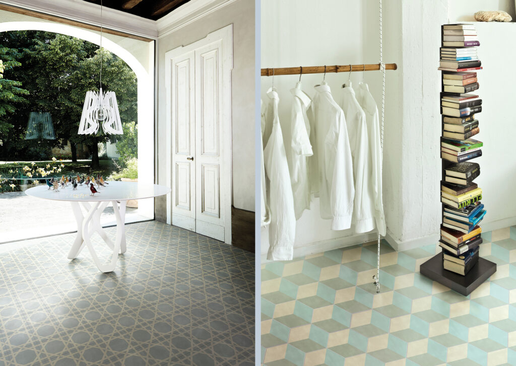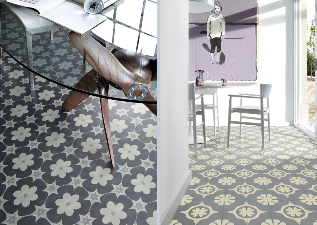La collezione è declinata in due formati, quadrato ed esagonale, ed è arricchita da una raccolta di cornici che si abbinano alle forme ed ai colori del catalogo.