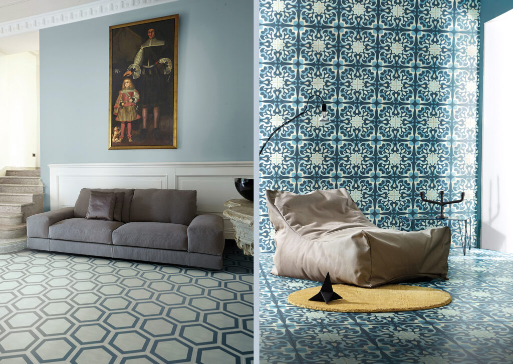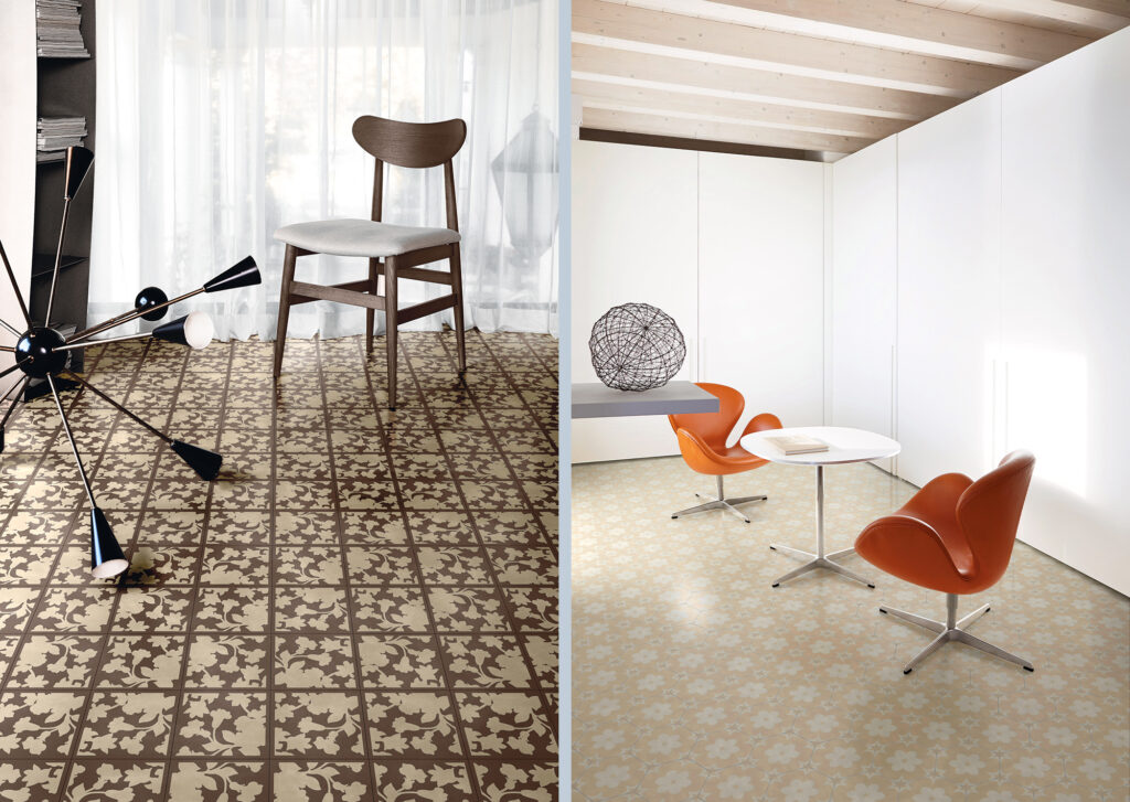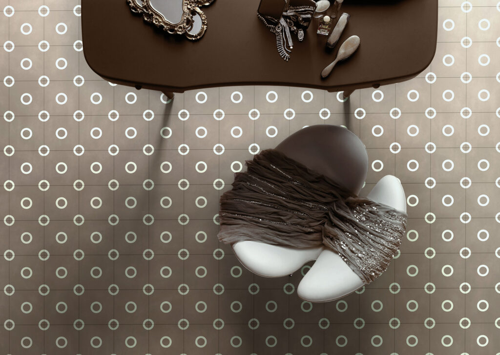 Coerente con il mio percorso stilistico, che unisce tradizione e linguaggio contemporaneo, emerge ancora una volta la passione per il mondo floreale, sia pensato come singolo elemento, sia immaginato come una fitta trama vegetale. Spesso le sinuose forme naturali hanno anche ceduto il posto a rigorosi segni grafici a contrasto e di gusto classico o ad icone che appartengono al nostro bagaglio figurativo, che ho tradotto per rendere omaggio alla più che decennale collaborazione con l’azienda Bisazza.