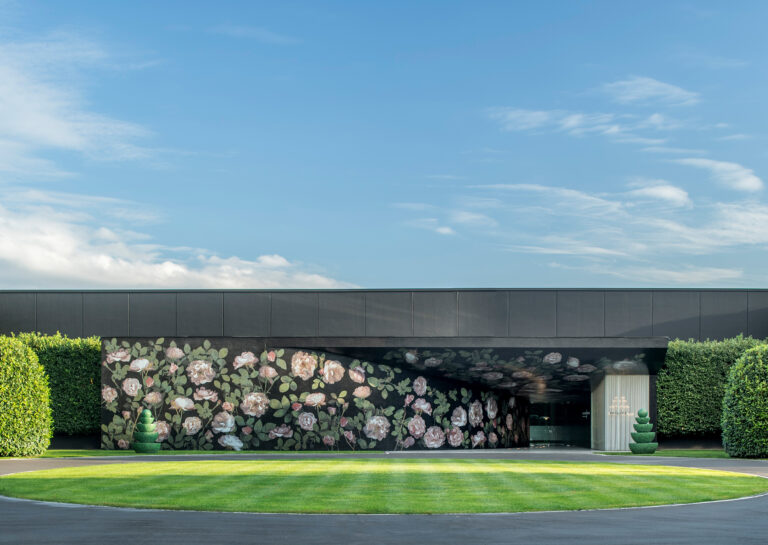 Una sequenza di edifici industriali, frutto di una lenta sedimentazione edilizia, si contrappone all’unicità del nuovo ingresso dell’azienda, immagine scenografica e tridimensionale del marchio Bisazza. L’ingresso rivestito in mosaico, raffigurato come una monumentale pergola di rose su fondo nero, si propone come un percorso emozionale tra esterno ed interno. Tutto è simmetrico e rispondente, il rigore è l’assoluto protagonista in un contesto armonico che lega lo spazio dell’ingresso con i percorsi interni, pubblici e privati.