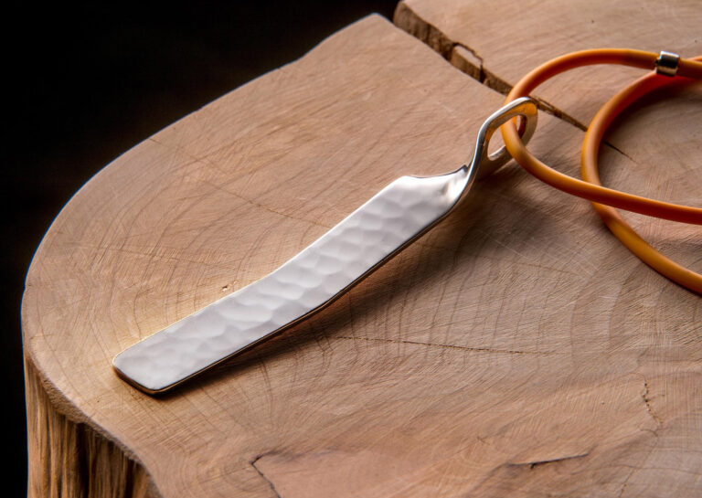 Ispirato al tastevin, la ciotola in argento usata dai sommelier per la degustazione del vino, Choxer è un oggetto da collezione appositamente disegnato per apprezzare la crema di cioccolato Chox. Una piccola spatola in argento da indossare, un oggetto dedicato ai cultori del cioccolato, dedicato a Rossana e Fabio.