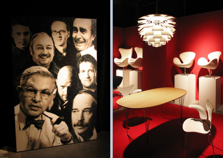 Lo Stand Fritz Hansen – Bisazza è stato allestito in via Tortona a Milano, in occasione del Salone del Mobile 2007. Il percorso ospita i pezzi storici della produzione Fritz Hansen posti su bianchi piedistalli prospicienti una lunga sequenza di tavoli Superellipse. Sulle pareti di fondo una serie di pannelli in mosaico con i ritratti dei designers che hanno collaborato con l’azienda danese.