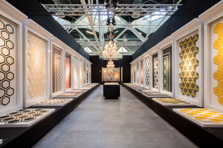 Un tour fotografico ci accompagna attraverso gli spazi lungo i quali prende forma l’allestimento della collezione Bisazza – Contemporary Cement Tiles assieme alle novità Mosaico 2015.