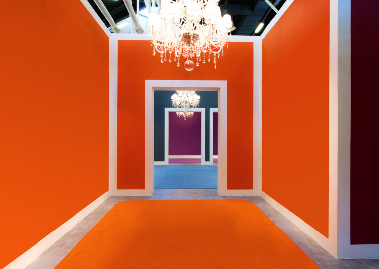 All’interno un susseguirsi di stanze caratterizzate dalla presenza di un colore a parete che si rispecchia anche sul tappeto posto al centro di ogni spazio. A ciascun designer è assegnato un differente colore che ne esalti il prodotto.