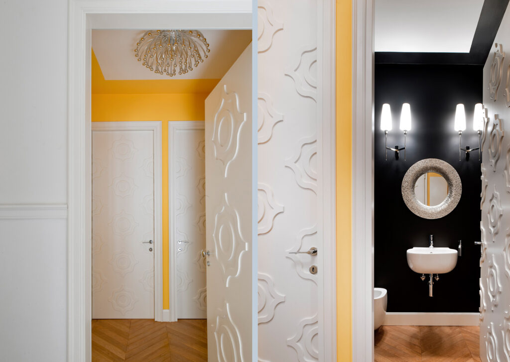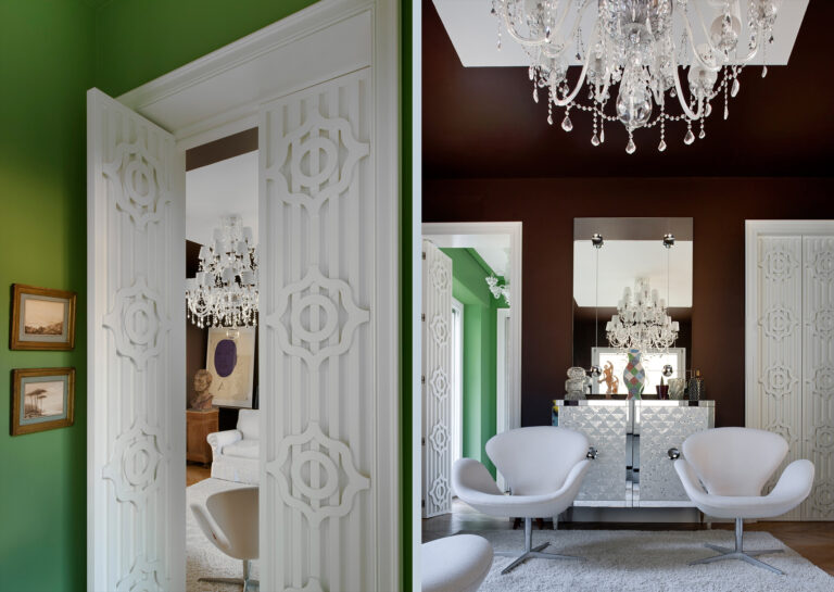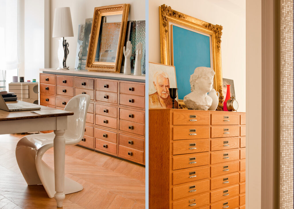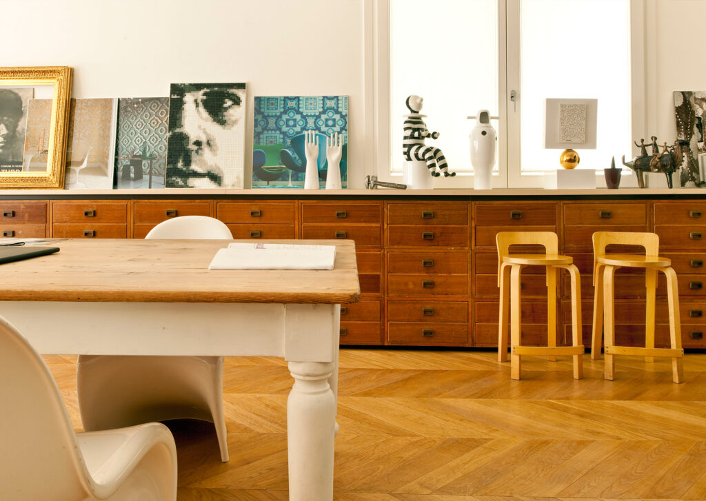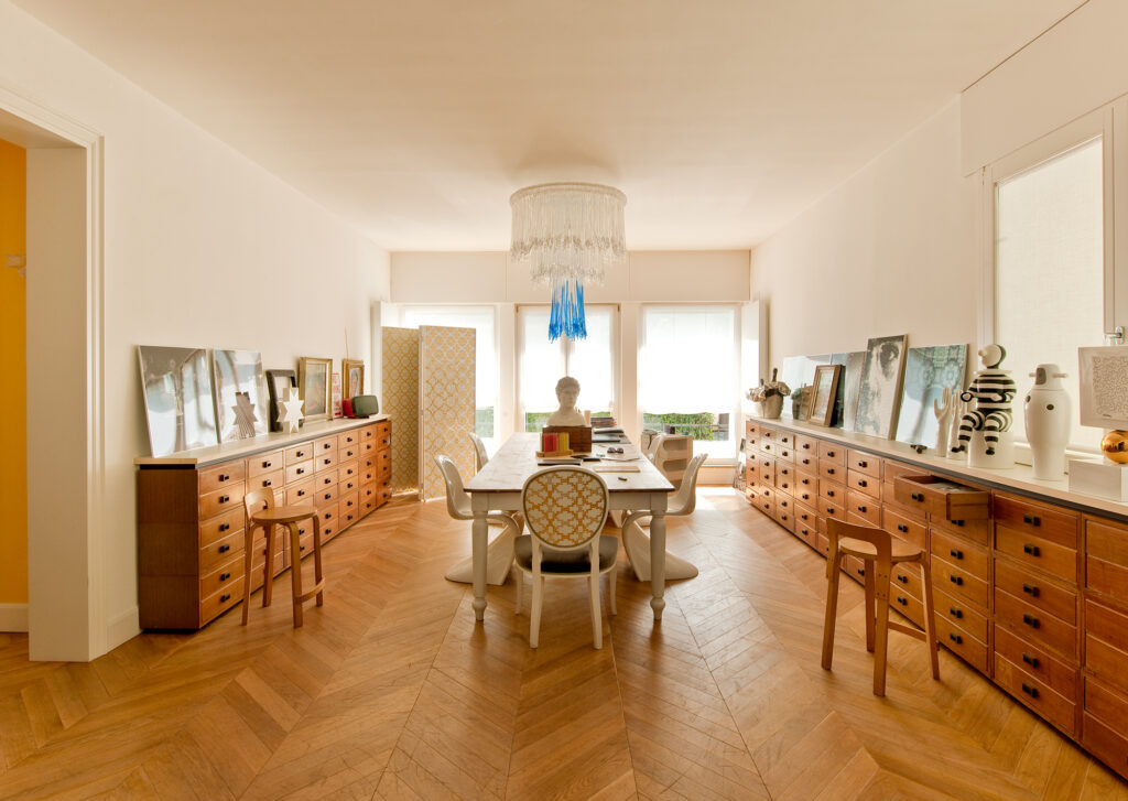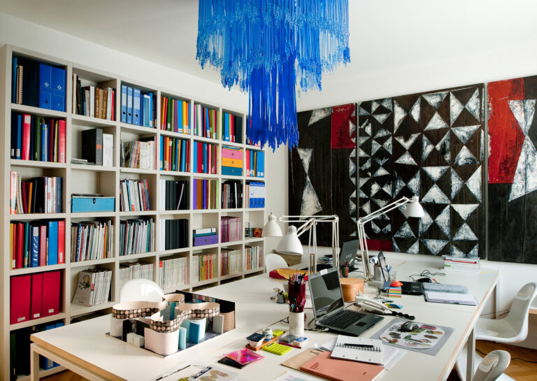 Lo studio professionale è concepito come un ambiente domestico. Le stanze si susseguono con i diversi colori alle pareti, differenziando i luoghi di rappresentanza dagli ambienti più intimi per la lettura e il lavoro.