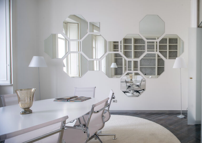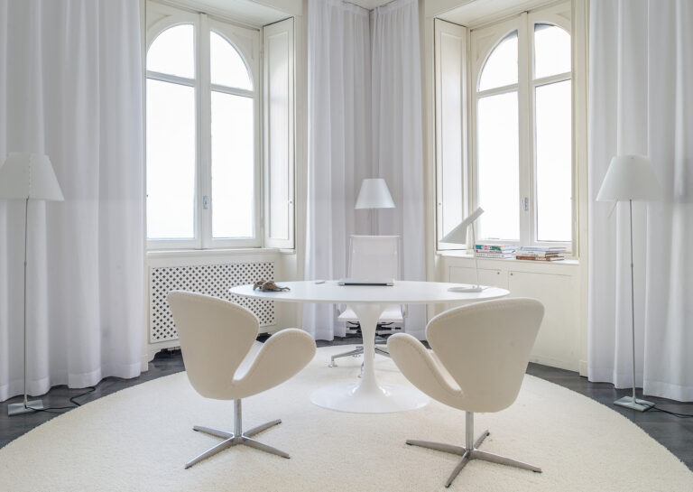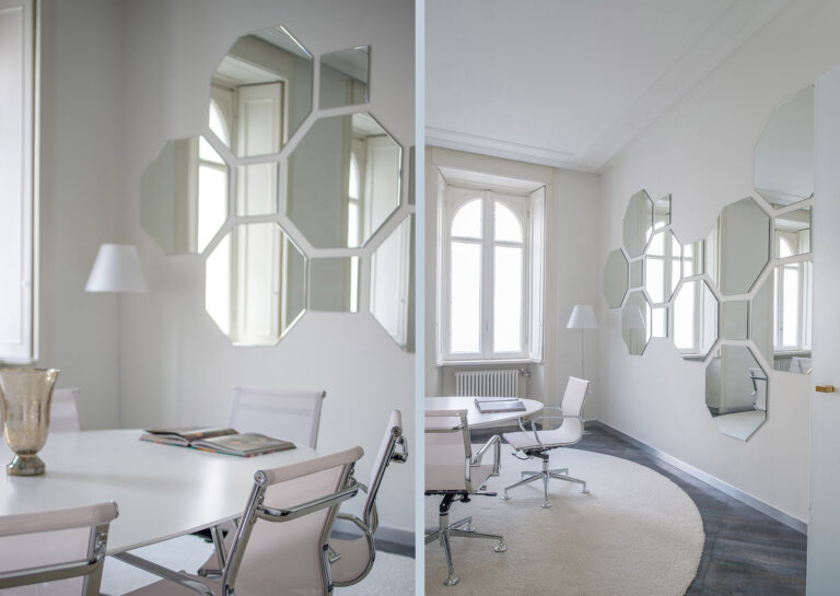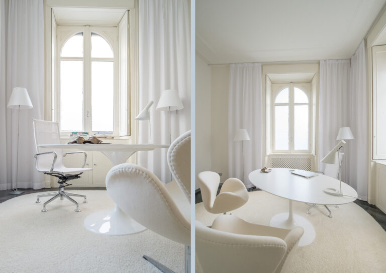 L’obiettivo è stato quello di creare uno spazio di lavoro familiare, che non avesse l’aspetto austero dello studio legale, ma fosse accogliente come una casa, anzi femminile. In ambienti già definiti e ristrutturati, è stata data particolare attenzione all’uso della luce, scegliendo arredi dai colori chiari, con predominanza dei bianchi e avorio, in contrasto con lo sfondo nero dei pavimenti.